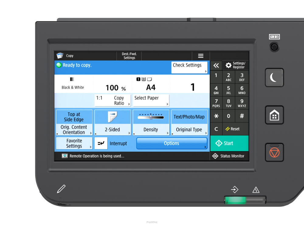 Drukowanie, kserowanie, skanowanie, fax. Formaty papieru: A6-A3, formaty niestandardowe.